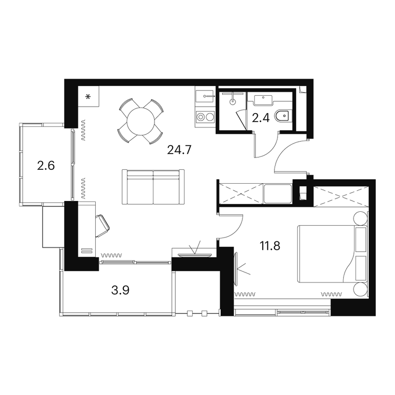2-комнатная 41.9 м