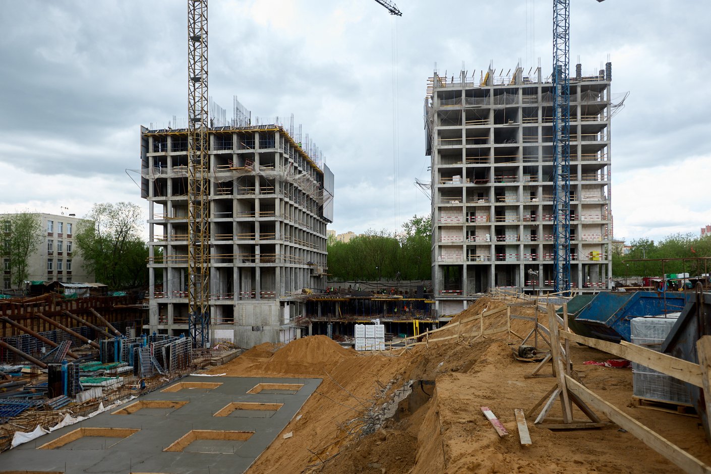 В рамках второй очереди INDY Towers завершается подготовительный этап работ (88%): мероприятия по организации подъездных путей, устройство временных автодорог и ограждения. В апреле строители приступили к разработке котлованов башен D1 и D2 и устройству технологических площадок для бурения и бетонирования буронабивных свай.